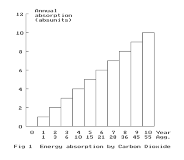 So, in 1981, Year 1, n=1, the increase in absorbed energy is 1 absunit,